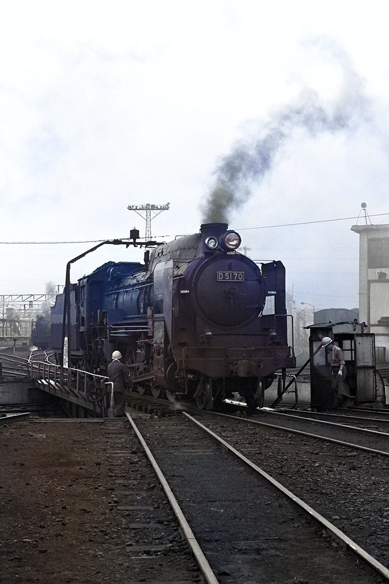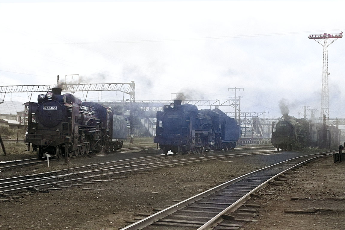 今回の最後は、出発線に雁首を揃えたオールスターズ。苗穂駅側から小樽築港機関区のD51465号機、岩見沢第一機関区のD51737号機、小樽築港機関区のD5170号機。70号機の後ろには前回見たようにC58415号機とD51394号機が控えています。1972年は全国的にはかなり無煙化が進んできて、SLブームに火が着いた年ですが、北海道はまだまだ幹線でも蒸気機関車が主役。見飽きるぐらい撮影できる経験ができたというのが、この時の撮影旅行の収穫でした。それぞれのカマの雰囲気の違いが、ちゃんと色でも表現できているのがいいですね。模型でも、いや模型でこそ、こういう機関車がいっぱいたむろしている感じを楽しみたいところです。