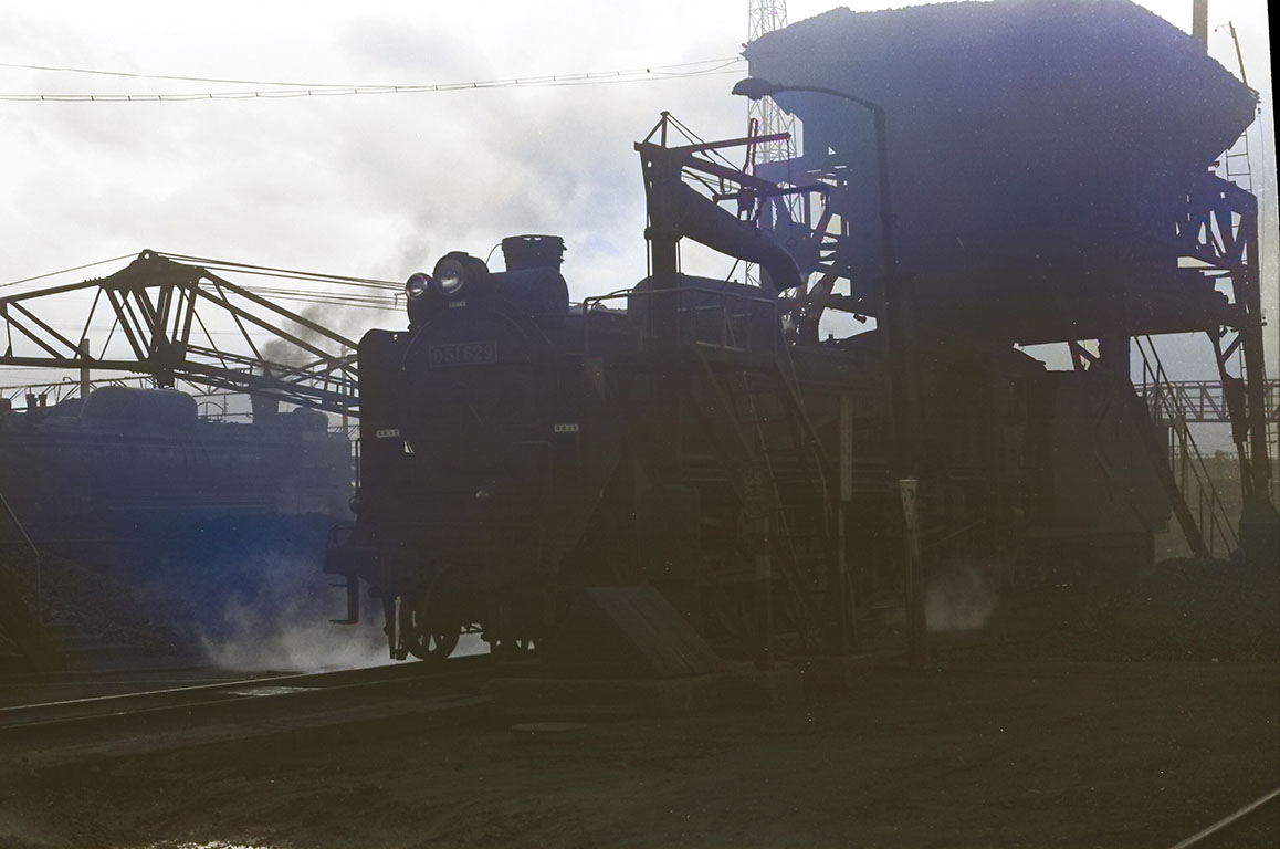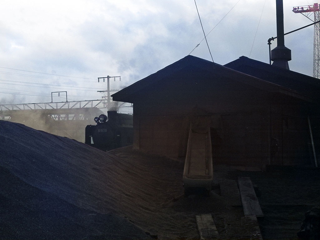 ちょっと趣を変えて、給炭台の上からの撮影です。苗穂機関区は流石に出入りの多い機関区だったので、給炭台とホッパーの両方を備えていました。積載する石炭の量で使い分けていたのでしょう。給炭台と言えども、終端駅にあるようなものとは違い相当な大きさです。石炭の山の間から顔を見せるD5170号機を狙いました。当時の北海道はまだ相当に大らかさが残っていて、許可さえ取って入構すれば、あとは直前直後の横断のような危険行為さえしなければ、どこで撮影するのも自由でした。これも現役時代ならではの面白いカットですが、撮ったことすら忘れていて、今回初めて気付いたような感じです。意図せずに撮ったからなんでしょうね。