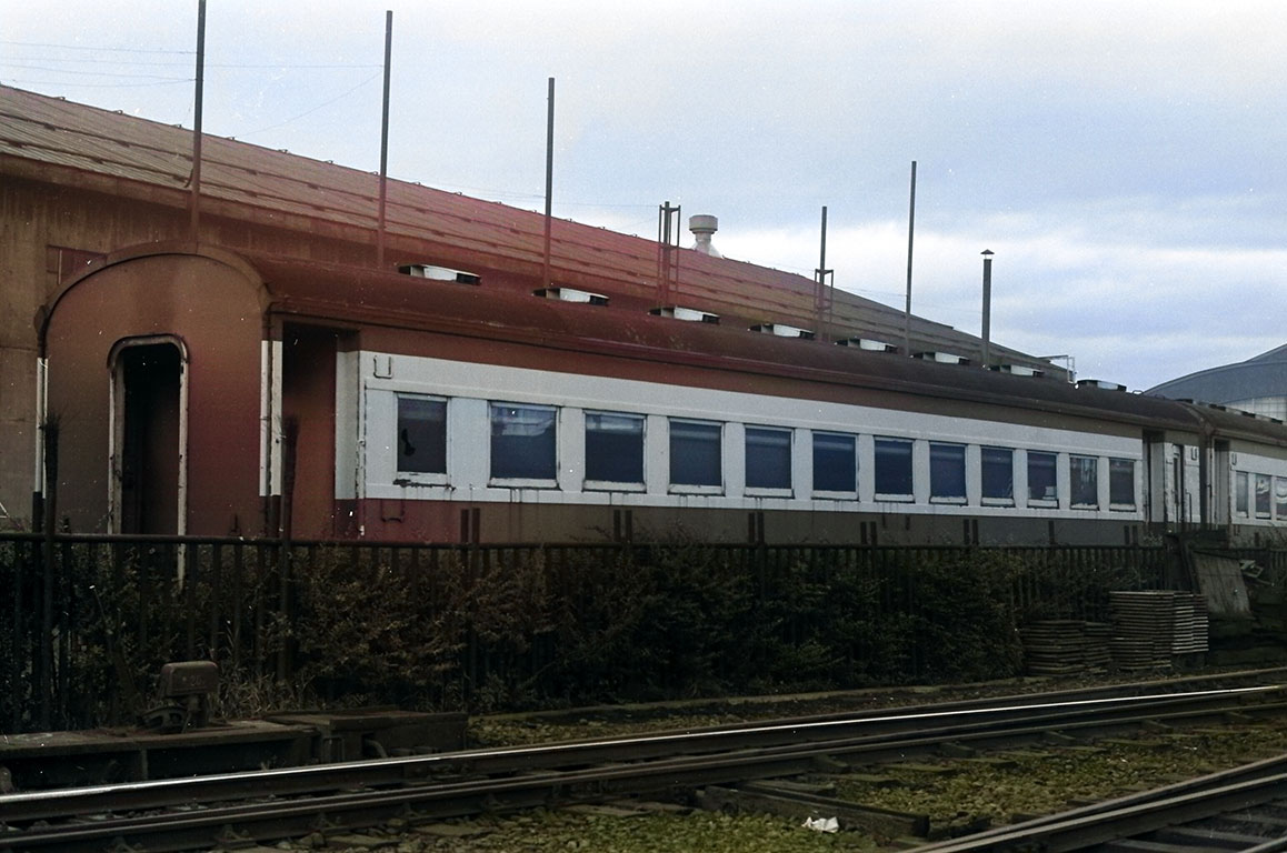 これが今回の問題作。苗穂機関区所属だったキハ09。苗穂工場側の側線に2輌繋がって留置されています。運用に就いていたのは前年の1971年までだったので、この時は第二種休車なのでしょうか、もう廃車されて留置されていたのでしょうか。キハ08はその後北海道鉄道学園に教材として残されていたので見たことのある人もいるかもしれませんが、キハ09はこれがギリギリですから、見た人は70代でしょうね。またAI君の色が何とも。窓廻りは確かにクリーム色で気動車の標準色が変色したような感じにも見えますが、濃い色の方はぶどう色2号が褪せた色にも見えます。AI君もこれが何者かわからず、なかなか悩んだ感じが伝わってきて憎めません。