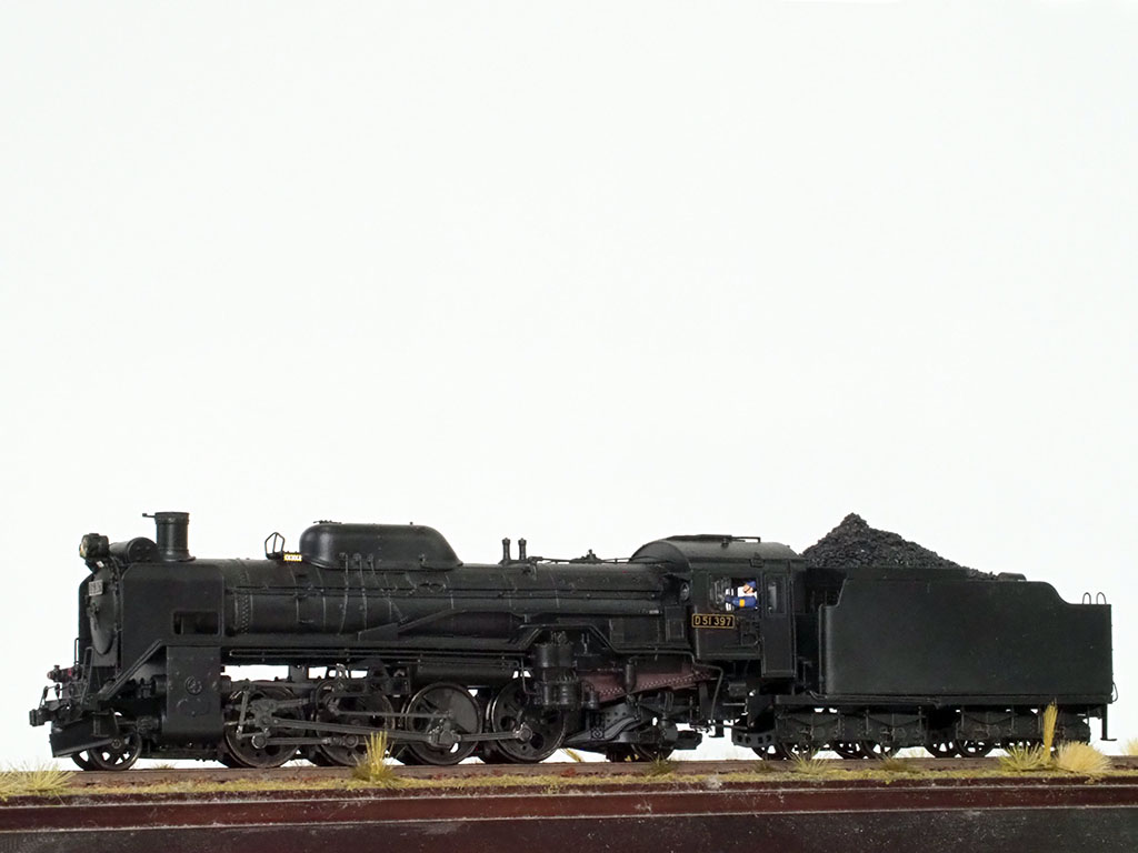 北海道は最初に撮影に行った時はまだ対本土の幹線貨物も蒸気機関車が多く担っていて、まさに北海道のライフラインをD51が支えていた。どこにいってもD51がうじゃうじゃいるという感じで、特に北海道仕様の標準型は飽きるほどいないと北海道の感じが出ないという刷り込みになってしまった。とはいえ、ModelsIMON製の特定番号機では標準型はギースル装備の241号機しかないし、乗工社時代の「北海道型D51」もそのままでは北海道仕様に見えない部分が多々ある。とはいえ使えるところは充分に使えるので、仕掛りやジャンクで出てきたものは手に入れようと思うのだが、これもなかなか出てこない。そんな中で、長野工場仕様の重装備に魔改造された(長工仕様の密閉キャブ機は存在しないし、苗穂・土崎工場持ちには集煙装置付きはない)北海道型D51のジャンクを入手。これを復元しつつちゃんとした北海道仕様にするという手間の割に映えない再生作業を行なったもの。しかし、密閉キャブのD51はタブレットキャッチャーをオフセットできないので、規格外の幅の狭いナンバープレートを作ってキャブに付けているが、ModelsIMONが初期に出した1/87の北海道ナンバープレートセットはそれに対応していないのでなんか少しはみ出ちゃってるが、これ作ってくれるところあるかなあ。IMONは標準図面通りだし。