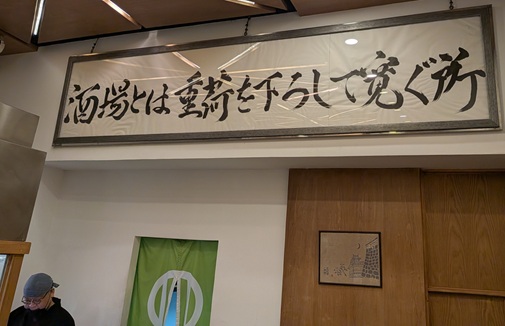 5時前にホテルを出て、今日は「伊達酒場」に行くことにする。私はこの居酒屋が好きで何度も行っているが、果たして何度目だろうか。ちなみにバンコクの居酒屋は20軒以上行っているが、ここが一番居心地がいい。何と言っても店内に掲げてある「酒場とは重荷を下ろして寛ぐ所」という書がいい(写真左、下にちょこっと写っているのはマスターである)。この書を見ると何となくほっとする。最初にこの居酒屋に来たときには、まだ仕事にあまり余裕がなくて、この書をみてほっとしたという経験が何気に思い出されるからだろうと思う。もちろん料理も美味しい。ただ値段は若干高めである。私の場合は2500~3000バーツは使う。日本円でいえば1万円から1万5千円というところか。まあ、日本の自宅近くの日本料理屋でもこのくらい使うことはもちろんあるのだが、バンコクの居酒屋ではやや高い方だろう。(もっと高いところはたくさんある) で、今日は2600バーツであった。