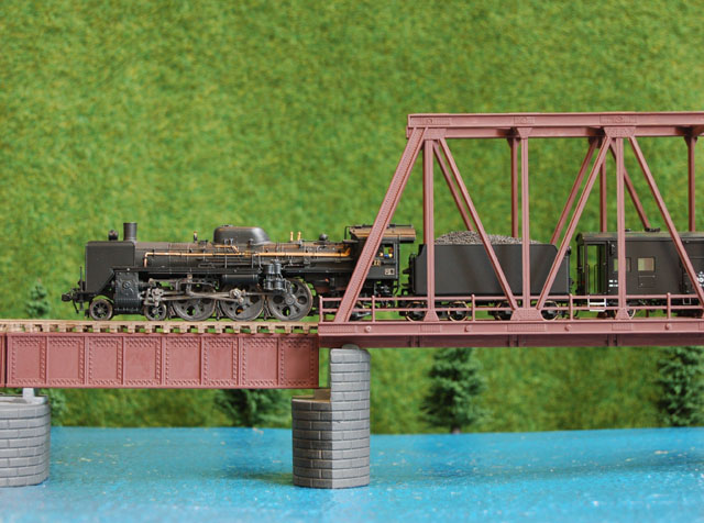 本日も鉄分無しにつき、土曜日のフォトセッションの別テイク。まあ、セットがセットなので、そう変わった構図にもできないので、多少寄った程度。今度はC55。実物でも、昭和40年代初頭に8620に代ってC55が配属されてた時代、ってのがあるんだよね。全検切れが近いのを集めたので、確か43・10までぐらいで、C57に置き換わるけど。まんざらウソではないが、やはり橋梁上で真横からみると、スポーク動輪っていいなあ。