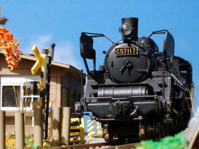 この週末はいい天気。ということで、個人的撮影会(笑)。10月になったので、秋のジオラマの登場。書き割り空もすっかり定着だが、今日の空と瓜二つな感じの雲で、なかなかリアル。このジオラマは、けっこう構図をとりつくした感もあるので、思い切って鉄道写真の原点。線路際でのどアップ。ところで、自分で作った車輌を、こんなにアップにしていいんでしょうかね。アラばっかり目だって恥ずかしい。でも、前部暖房管のコックは、けっこう効いているなあ。