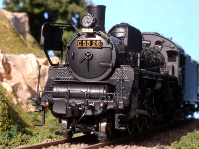 起き掛けは曇っていたが、だんだん晴れてくる。時々、雲間から直射光が射してくる状態なので、撮影OK。朝食後の時間を利用して、ワンカット。黒岩氏のムービーにヒントを得て、蒸気牽引列車の交換風景。やはり、イメージとしては筑豊本線か。ということで、9600とC55の登場。しかし、ちょうどすれ違うシーンというのは、スチルだとなかなか撮れない。コレばっかりは、圧倒的に運がモノを言うので、撮ろうと思っても撮れるモンじゃないからだ。ぼくも、数えるほどしか(それもほとんどが北海道)撮れていない。その点、ムービーは、ジャスト目の前ですれ違わなくても、それなりに雰囲気が出るから強い。ということで、こんなの模型ならではという、すれちがいのシーンを、3:2のライカ判フォーマットで。