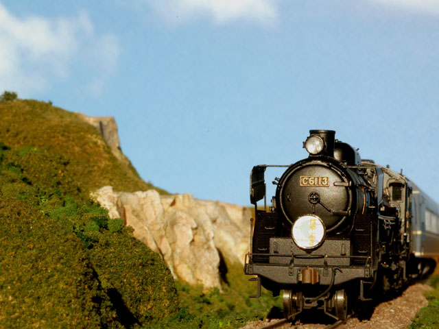 昨日は、午後から模型店めぐり。すると某店にて、16番用の「小さめのヘッドマーク」を発見。EF66用か。けっこう種類も多く、どんなのがあるか見てたら、「はやぶさ」があるじゃないの。さすがに、例のカーブミラーのような九州仕様ではないが、絵柄は全然OK。ということで、今朝も再度「田原坂」見立てに挑戦。今度は正面からなので、「岩山」の処理が悩ましい。いくつか撮ってみたところで、絞りの調節で、アウトフォーカスになるようにするのが、一番遠近感が出るのではないか、ということに。しかし、こうやってみると、もともと「騙し絵」になるようにジオラマを作ることも不可能ではないし、こと写真に撮って見せるのなら、それもなかなか効果的かもしれない、という気がしてきた。