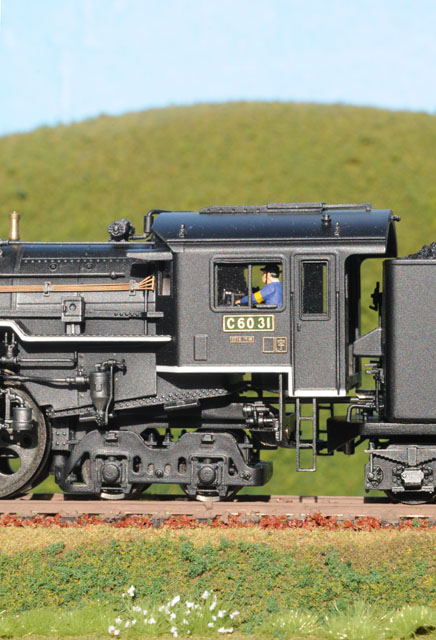 今週もまた予定が目白押しの週末だが、これだけ書いたらなんか写真を出さなきゃということで、C60のカットを撮る。が、レトロフィットでC59を改造したので、違いが判るところを強調しないと、ナンバーを貼り変えただけの、単なる「エンブレムチューン」にしかならない。おまけに、普通に全景を写したのでは、なかなか従台車が目立たない。ということで、苦肉の策のこのカット。機関士人形が乗ってるから、なんとかサマになる構図だよね。こういう真横の撮影には、例の築堤のお立ち台は結構役に立つ。