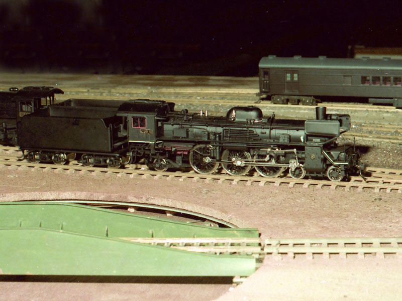 村山先生のレイアウトに持参したのは、高校時代に作りニワの動輪が発売されてから大学時代に下回りを作りなおしたC55と、大学時代に学園祭に間に合わせて急遽製作したC57 4次型。どちらも、宮沢製C57のボイラーがベース。修理のためにバラしてみると、1970年代のティーンズのガキながらけっこういろいろナマイキに頑張っていて微笑ましい。とはいえ70年代の16番なので、おおらかな目でみて頂きたい。なんか、大分電化前の日豊本線みたいな感じかな。バックにに見えるナロートラムの架線柱が、街中の電柱のように見えるのがご愛敬。C57のテンダは12-17Eをスクラッチで作るつもりでいたが時間が無くなり、当時製作中だった北海道型密閉キャブのD51戦時型用に鉄道模型社のC62テンダのジャンクから作ってあった10-20を急遽召し上げて学園祭に出して以来、40年間そのままになってしまったという曰く付きのモノ。彼から借りた客車を牽引させてみたが、40年ぶりの動態復元というワリには結構安定して走った。昔の「バンカラ・メカ」は、効率は悪いがある意味スゴいなあ。