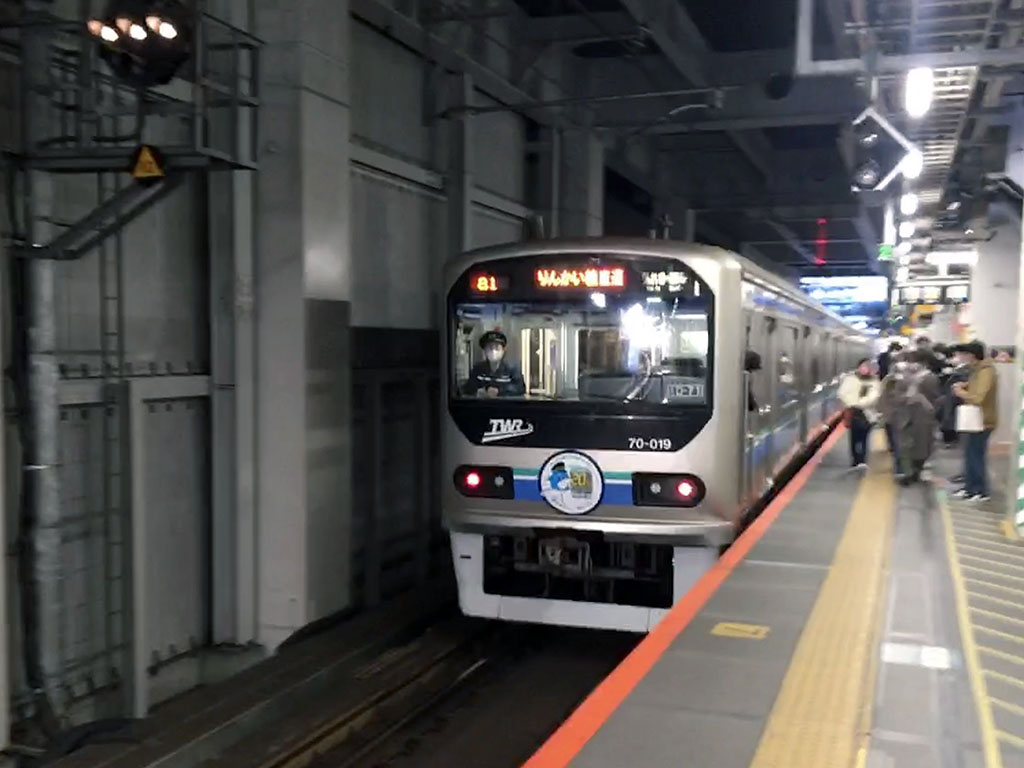いつも大学の講義をやった後すぐ帰る時に乗る電車はりんかい線車輛の運用。昼の時間帯は、埼京線から新宿以南に直通する便は少ないので、おいおいそれになってしまう。今日も何気なく乗ると、車番からりんかい線20周年記念号70-010Fと気が付く。それならとばかりに、渋谷で降りてから見返りでワンカット。暗くてシャッタースピードが遅いのか、これ流し撮りになってるよ。少なくとも車番にはピンが来てるからなあ。スマホで流したのって初めてかも。