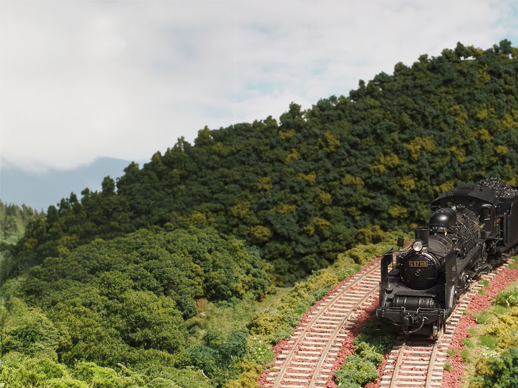 月イチ恒例(になっちゃった?)の、AI生成ジオラマフォトシリーズ。カラー化でも生成でも、木の生い茂った日本の山はAI君の得意ワザの一つなので、ちょっと大胆にやらせてみた。縦構図を生成で横構図に広げてしまおうというもの。山と空の部分を広げるので、仕上がりは充分に期待できる。結果、なるほどいい感じに出来上がってきた。地形的にも無理なくまとまっている。しかし、AI君はジオラマではなく実物の風景を学習しているので、実際にジオラマで作った部分より自然な感じかも。これ結構大きいレイアウトを撮影したように見えるけど、この景色をこの感じで仕上げるのはかなり大変だなあ。こうなってくると、ジオラマ撮影のアシスタントとしてAI君は欠かせなくなるかも。