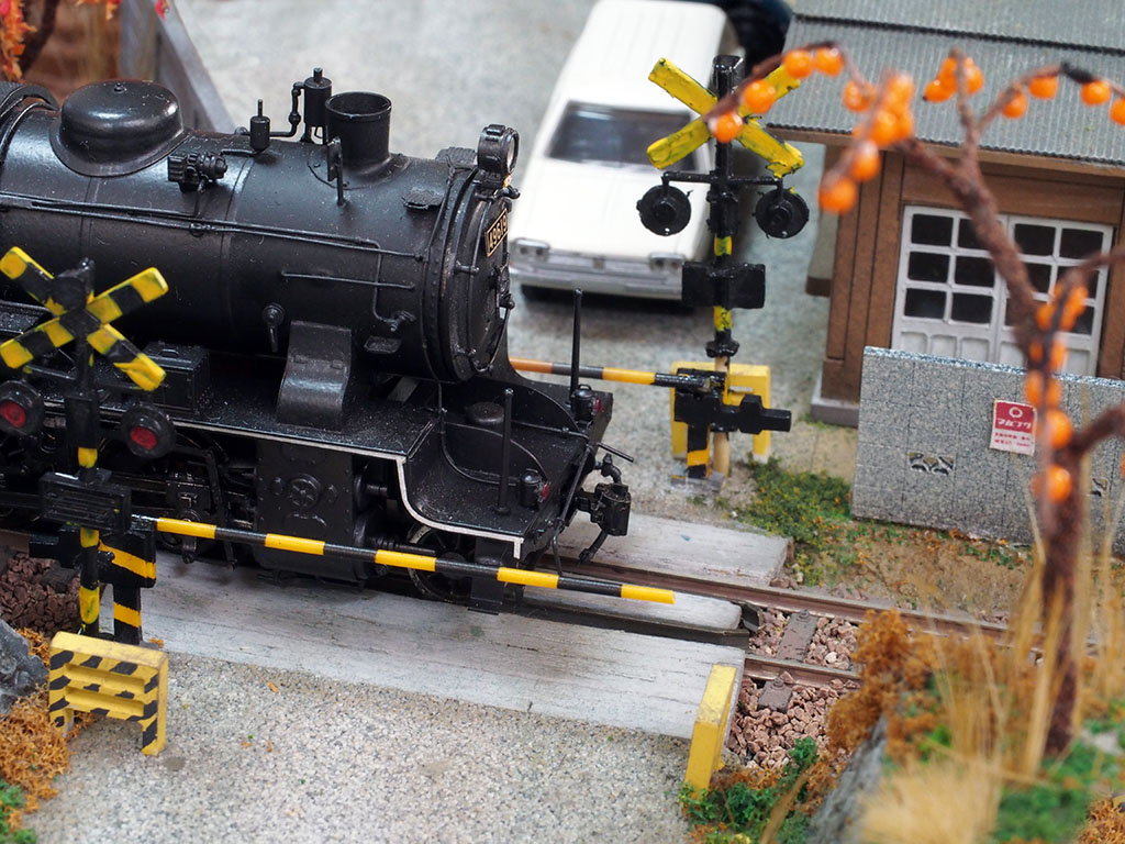 ということで、修復はひとまず完成したので記念の撮影。元がヒルマのストラクチャの見本として模型店のでもように作った16番のジオラマなので、いかに自分のテイストで手を入れているとはいえ、本気の陽射しで照らすとボロが出るところもある。なわけで16番的なライティングでの撮影。でも人工光ではなく、反射光をうまく使った太陽光だよ。ここまでアップってのはあまりやらないし、模型撮影では俯瞰気味のは避けてるんで少ない。それも含めてこのジオラマならではの撮り方かな。また49619号機でスマン。けど非公式側は初めてかも。