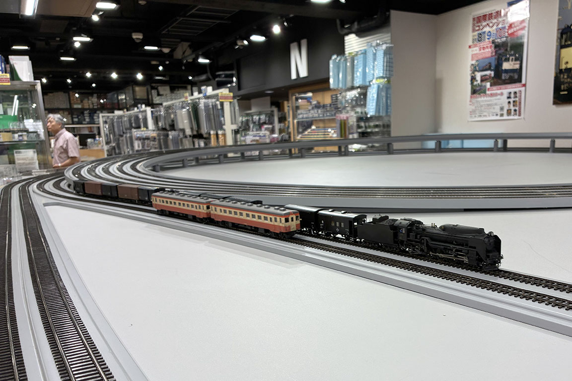 本日は大学の時の鉄道研究会の期が近い有志のOB会。いつもやる梅雨が近い時期が近付いているのに、今年の会の予定が出ていないことを指摘したぼくが事実上の幹事にされてしまったので、パンダレストランでの会食からModelsIMON渋谷店の貸しレイアウトでの運転会という、井門さん周辺ではありがちなパターンで仕切る。実はこの期の大学鉄研のメンバーは高校での鉄仲間とほとんど重複するので、どちらのOB会かわからない面もあったが、まあこういう会は楽しく盛り上がればいい。で、二次会というか運転会に突入。なんか2週連続の運転会となってしまった。昔の原宿店の頃のレイアウトのタダ券が残っていたので、16.5mmと12mmと2エンドレス借りる。12mmはぼくしか持って行かないので、モデルワーゲンベースのキハ22の2連と、FAB・ヴィスターヴィーゼの17m級旧型国電3連。SLはIMONのC5711号機と乗工社のD511号機で貨物列車を牽かせた。一応16番も持っていって、先週に続いてC571号機の牽く5連の普通列車。どれも良く走ってくれた。やはり線路状態がいいおかげか走行がヤバいワーゲンのキハ22もフルタイム調子良く走ったし、16番のC571号機は先週とは見違えるほどの静かで電力も食わない棒形モーターとしては優秀な走りで走り続け、一同結構びっくり。やっぱり昭和のアナログ車輌は慣らしで走らせてるとなじんでくるな。