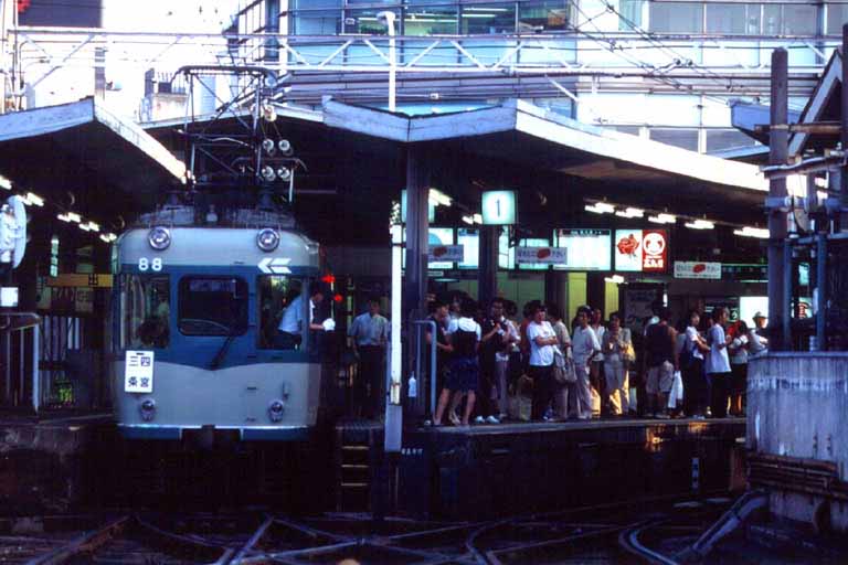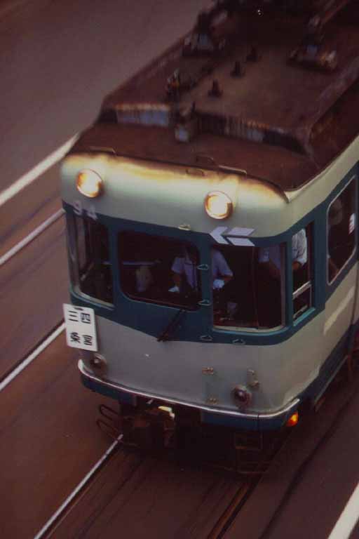 こっちの鉄仲間の案内で、京阪京津線を訪ねた。関西へはちょくちょく来ているものの、ここは初めて。もうすぐ地下鉄が出来て、三条通りの軌道区間が廃止になる、という。実のところついこないだまで「きょうづせん」と読んでいたような私は、一体どんな鉄道なのかまるで知らなかった。知らないまま、でも併用軌道は面白いからと、物見遊山気分で連れて来られたような具合。 |