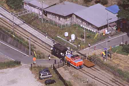 陰り行く2つの重連。蒸機の吐く息も白く。 (2004.11.13)