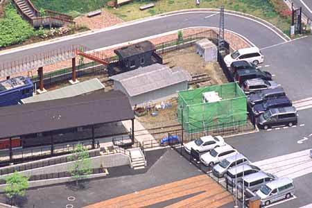 ロクサンの体験運転乗降場横で、何やら工事が・・・。その後届いたファンクラブ会報「とうげ」によると、トロッコ列車の駅の由。 (2004.1.24)
