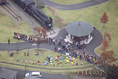 遠足かな。生憎の天気でちょっと気の毒。 (2004.10.30)
