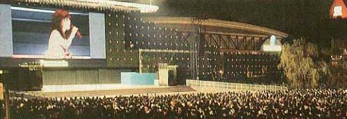 後方スクリーンは暗くなっていますが、中盤になり人影が。