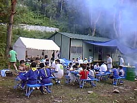 お風呂の後は食事になりました。屋外で食べるご飯は格別です。