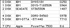 これでPowerDomain 29160Nに二台のIBM製10000rpm級18GBドライブがぶら下がることになったので、SoftRAIDでRAID 0(すとらいぴんぐ:複数のHDDに分散させてデータを書き込むことにより、連続読み書き速度を高める手法。構成するドライブのどれかが壊れるとデータが失われる為、データ消失の危険度もどんどん高まるのが難点。)を組んでみることが理屈上は可能です。しかし、それをやってしまうとこのカイモノの目的(=DNES入滅で減った総容量の回復)が全然達成されないことになりますので、今回は見送り。そのうちこれら二つのドライブが「主役」級から降りる時が来たら試してみるやもしれません。(私の今の用途では連続読み書き速度を上げても利益少ないですし・・・あ、ちきちきに間に合ったらやってみてた気もします。ただ、「その五十八」での試行と下に述べる結果から想像すると、7300 + G3/432MHzってな環境ではあまりRAID 0の威力を発揮できそうもありません。G4マシンだったら少しは面白い結果が出るやもしれんちん。)