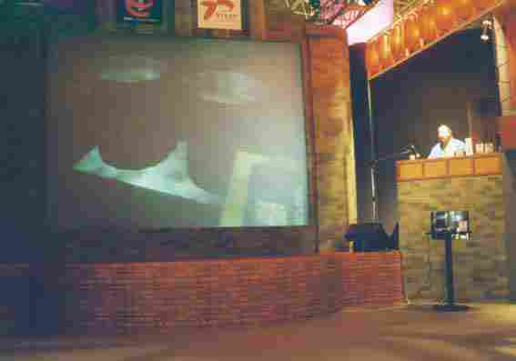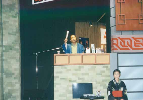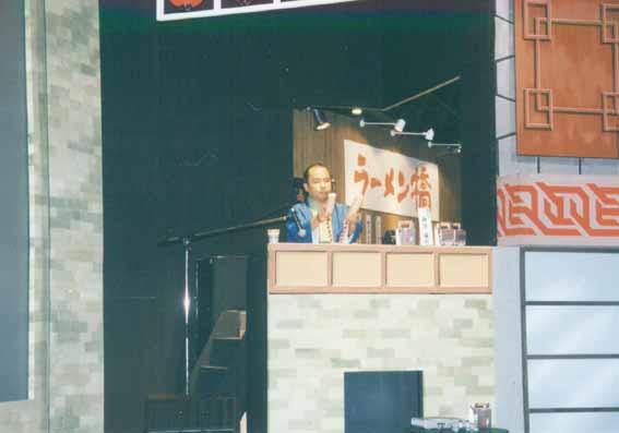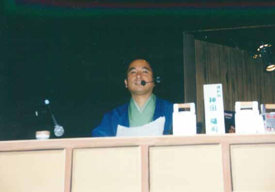 ←これは、ブースのアップ。あのマイクは とても良かったです。 原稿を持ったままとい うのがイマイチですが、前日に曲が変更になったため、口上も書きなおしたのでそのままになってしまいました。 |